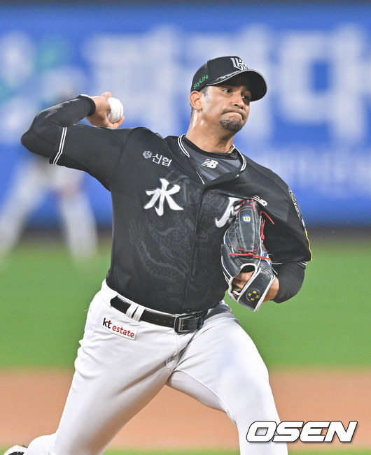 KT의 선발 쿠에바스는 6이닝 2실점으로 퀄리티 스타트를 기록하며 시즌 7승을 거두었습니다.